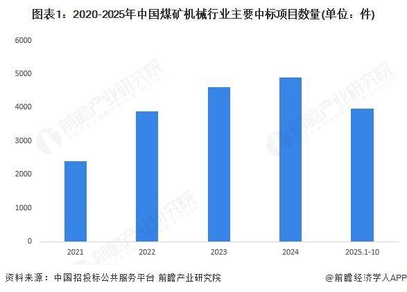 投标是一方(投标人)欲出售、采办商品,或欲扶植工程项目按必然法式收罗应征人,不经磋商而进行买卖的一种方式。目前,国内煤矿机械项目扶植投标大都以公开投标的体例进行。按照环节词“煤矿机械”、“采煤机”、“掘进机”、“刮板输送机”、“输送机”、“液压支架”等进行搜刮,2021年以来,国内煤矿机械行业相关中标项目全体呈现增加趋向,2024年为4890个。2025年前10个月有3970个中标项目。